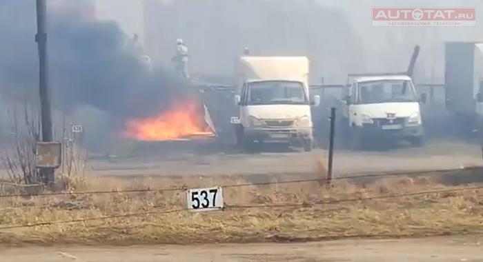 В Челнах сгорели из-за вспыхнувшей травы три автомобиля. ВИДЕО