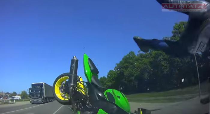 Видео: мотоциклист протаранил машину, уворачиваясь от пешеходов