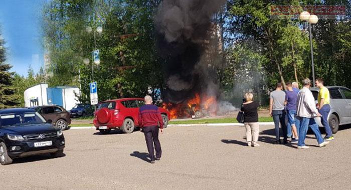 В Казани у фитнес-центра полностью сгорел автомобиль