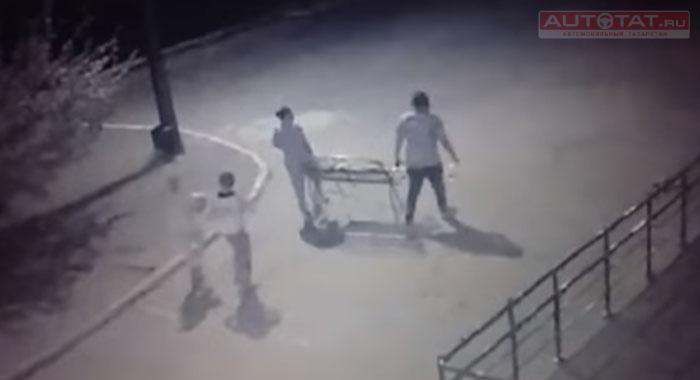 В Казани неизвестные украли с территории школы лавку. Этот момент попал на камеру наружного наблюдения.