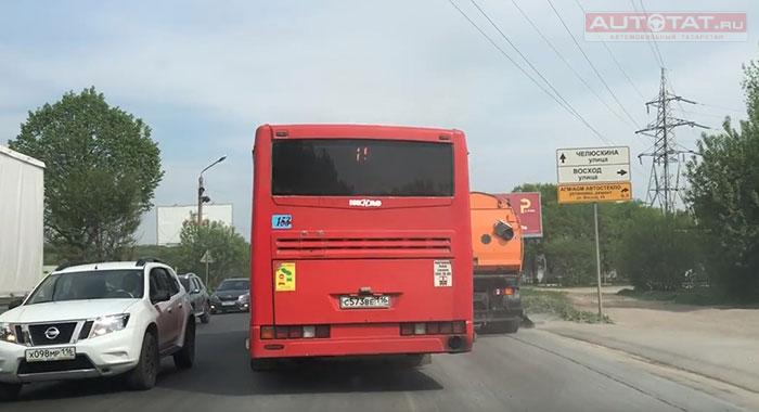 В Казани автобус высадил пассажиров на трамвайной остановке, видео