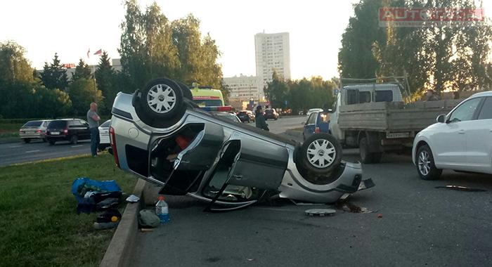 Отметим, что сразу после столкновения автомобиль виновника ДТП перевернулся на крышу.