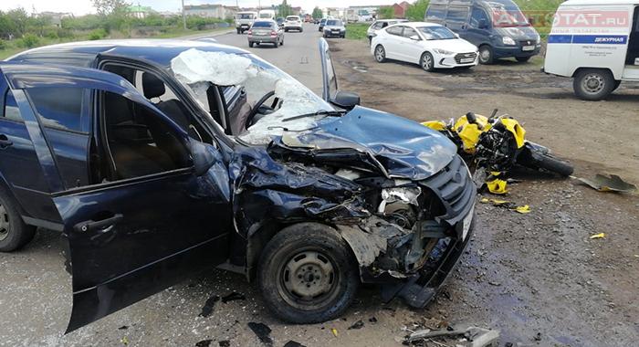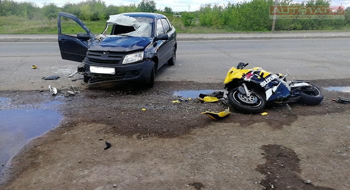 Сегодня утром в Нурлате 54-летний водитель LADA Granta сбил мотоциклиста. Появились фотографии с места происшествия.