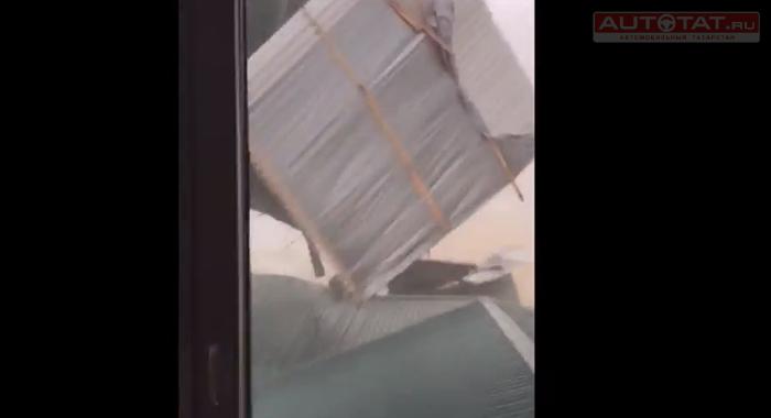 В редакцию AUTOTAT.ru прислали видео, как ураган срывает крышу с домов в Казани.