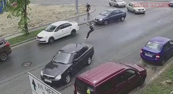 Казанцы начали обсуждать видео с наездом на человека в Петрозаводске. Мужчина переходил дорогу, болтая по телефону. В этот момент его сбила “Лада”.