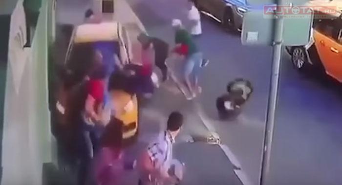 Появилось видео, как таксист въехал в толпу людей в Москве