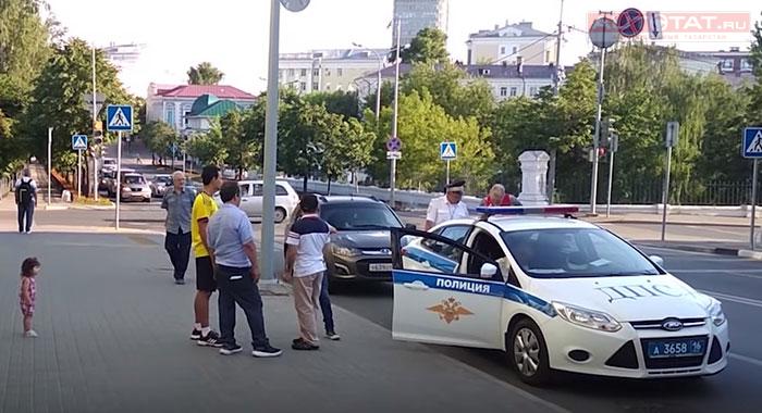В Центре Казани автодом с болельщиками из Колумбии попал в ДТП. Видео