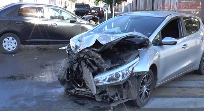 По словам водителя KIA, он выехал на перекресток на зеленый сигнал светофора, а вот владелец Chevrolet явно двигался на запрещающий сигнал светофора на высокой скорости.