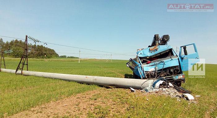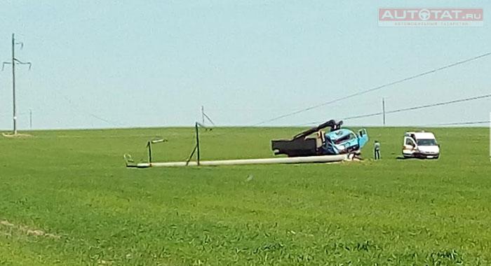 В РТ водитель грузовика умудрился сбить столб в поле