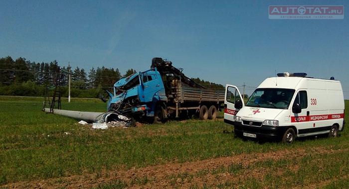 В Татарстане Камаз на скорости снес бетонный столб. ФОТО
