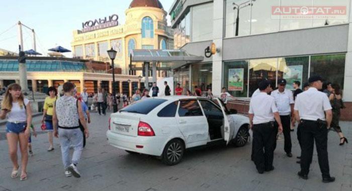 Неадекватный водитель на LADA Priora устроил ДТП недалеко от ТЦ Кольцо, а затем протаранил шлагбаум и выехал на тротуар.