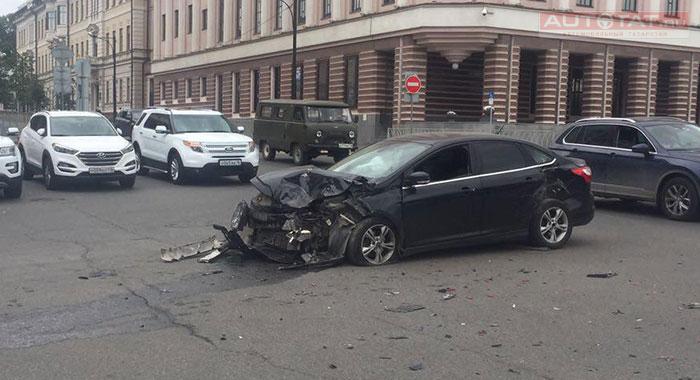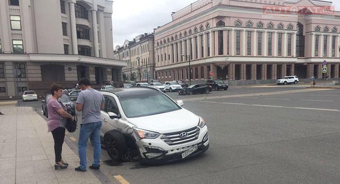 Сегодня напротив Кабинета министров РТ произошло серьезное ДТП с участием двух иномарок. Автоледи на Hyundai столкнулась с черным Ford. Очевидцы сообщают, что скорость у кроссовера была больше 100 км/ч.