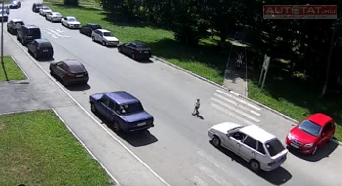 В ГИБДД Казани сообщили, что женщина не выбрала безопасную скорость движения и сбила ребенка, который пересекал дорогу на самокате по пешеходному переходу. Вот только на данном участке дороги “зебра” не имеет никаких знаков для автомобилистов и, вероятнее всего, нарисована самовольно. Ситуацию еще усугубили и припаркованные у тротуара автомобили.