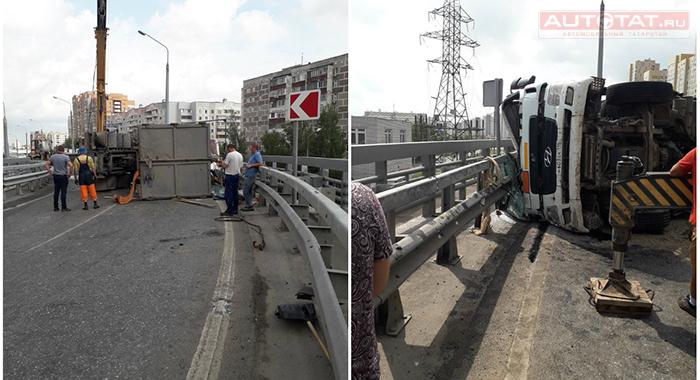 В Казани на развязке перевернулся грузовик. Видео и фото