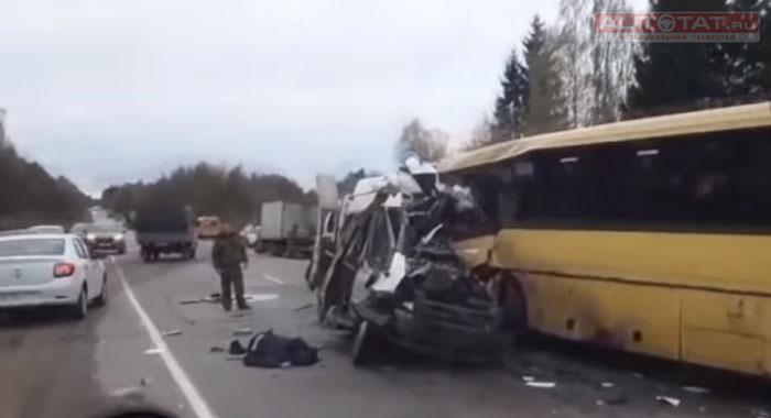 Трагедия случилась около 7:40 часов недалеко от села Некрасово. Там лоб в лоб столкнулся микроавтобус Ford Transit и автобус ЛИАЗ. На месте происшествия от страшных травм скончались 13 человек - 12 пассажиров и водитель Ford Transit.