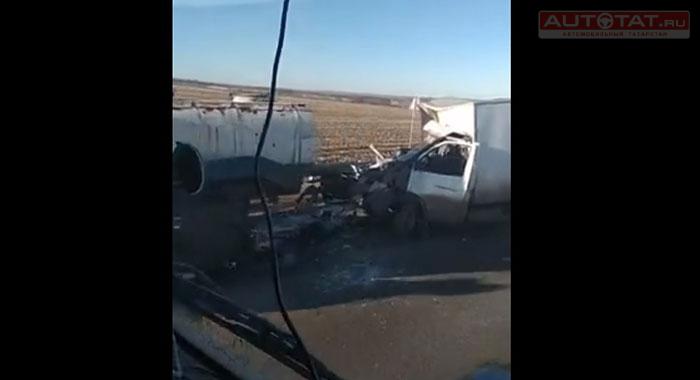 На трассе в РТ Газель попала в смертельное ДТП с молоковозом
