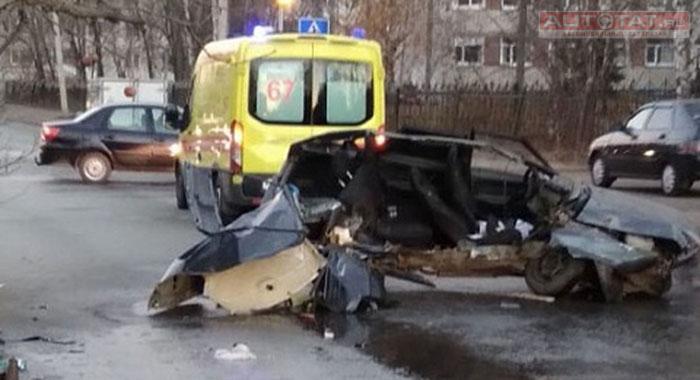 В результате ДТП легковушка получила серьезные повреждения: на фото у нее отсутствует крыша и сильно повреждена правая часть кузова. Видимо спасателям пришлось воспользоваться специальным инструментом, чтобы достать человека из машины. В итоге, водителя увезли в больницу с сочетанной травмой. Очевидцы говорят, что он родился в рубашке и только чудом не получил серьезные травмы.