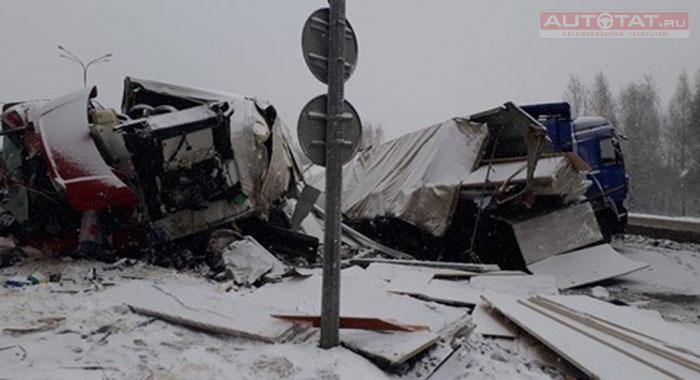 Видео: водитель из РТ погиб при лобовом столкновении двух грузовиков.