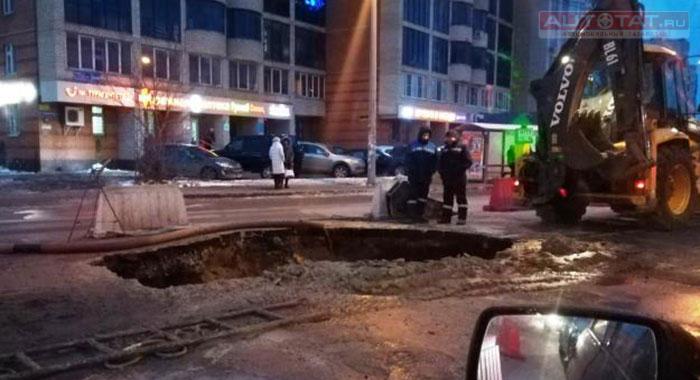 В Казани внезапно провалился асфальт на Аделя Кутуя