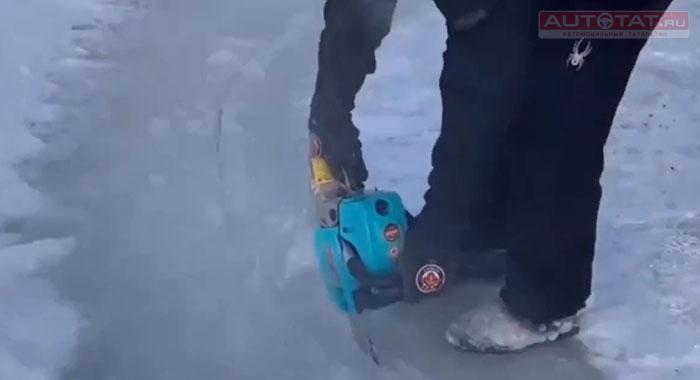 Казанские рыбаки сделали из льдины настоящую карусель и записали процесс ее создания на видео. Получилось очень даже хорошо.