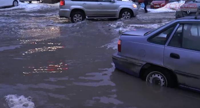 В Казани автоледи застряла в большой луже. Никто ей не помог. Видео