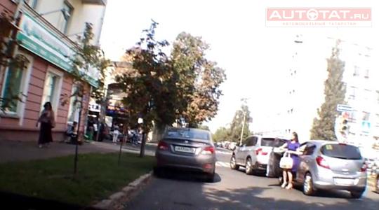 В центре Казани на перекрестке улиц Гоголя и Большая Красная (у 7-ого здания КАИ) видеорегистратор автомобилиста запечатлил весьма интересную ситуацию.