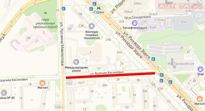 С 20 июня в Казани закрывается движение по ул.. Бр. Касимовых
