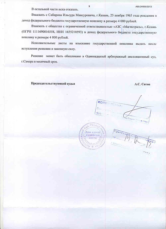 Решением Арбитражного Суда Республики Татарстан