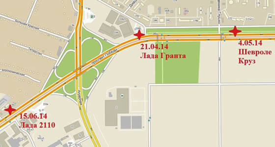 Авария на пр.Победы, которая произошла 15 июня 2014 года уже не первая на данном участке Казани. За последние два месяца это третье по счету ДТП, в котором водители не могут справиться с управлением и «вылетают» с дороги, травмируя не только себя, но и случайных прохожих.