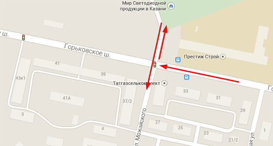 Кроме того, при движении по Горьковскому шоссе со стороны ул. Фрунзе для поворота налево в жилой микрорайон на ул. Можайского потребуется повернуть направо, развернуться и пересечь указанный перекресток в прямом направлении.