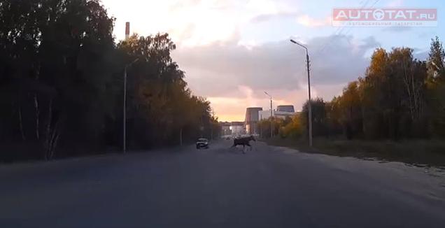 Осторожно - лоси: вчера вечером в Казани автолюбитель встретил в городе лося