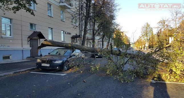 В Казани недалеко от парка Черное озеро упало дерево прямо на припаркованный на платной муниципальной парковке автомобиль BMW. Кроме того, в минувшую пятницу по всему городу были зафиксированы случаи повреждения машин из-за сильного порывистого ветра.