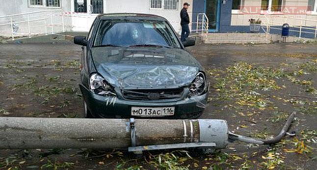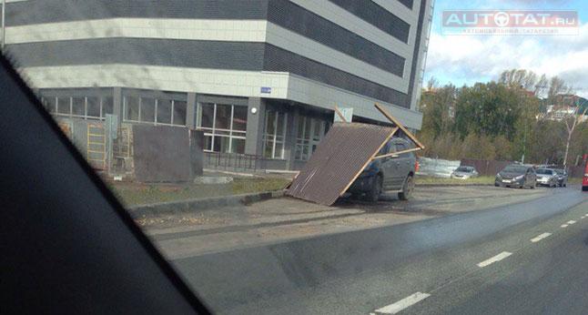 Так, на улице Гараева металлический забор упал на припаркованный внедорожник, а на улице Серова столб “огрел” по капоту LADA Priora.