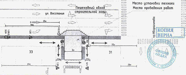 На данном участке дороге запланирован ремонт самотечного канализационного коллектора. Для большего понимания дорожной ситуации с учетом ограничения движения публикуем схему расстановки временных дорожных знаков.
