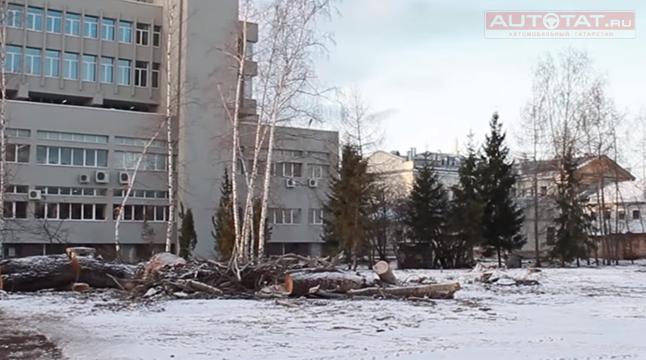 Скандал: в Казани вырубают деревья ради новой парковки
