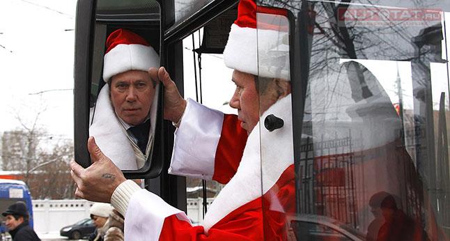Помимо забастовки таксистов сегодня в Казани можно прокатиться на “новогоднем” автобусе №1. В честь Старого Нового года водитель и кондуктор рейсового автобуса решили переодеться в Деда Мороза и Снегурочку, чтобы развеселить пассажиров.