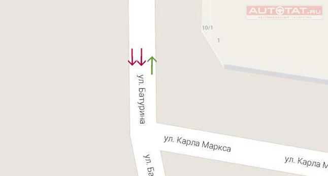 Так, на участке ул. Батурина (от ул. Большая Красная до ул. К. Маркса) организовано двухполосное движение от Кремлевской набережной в сторону центра Казани. А вот в обратном направлении теперь действует одна полоса движения транспорта.