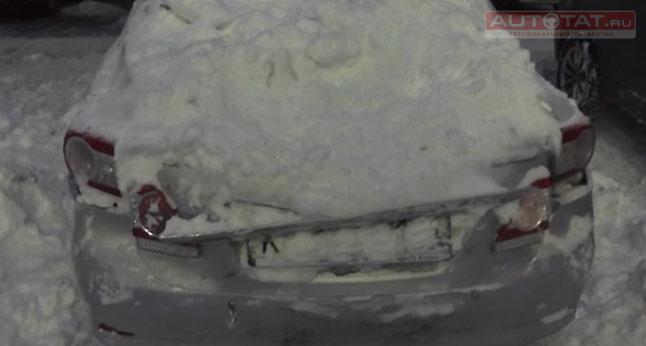 В Казани снежная лавина с крыши здания повредила три иномарки. Видео