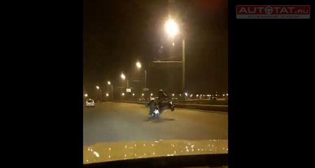 В Казани лихачи на мотоцикле выполнили опасный трюк. ВИДЕО
