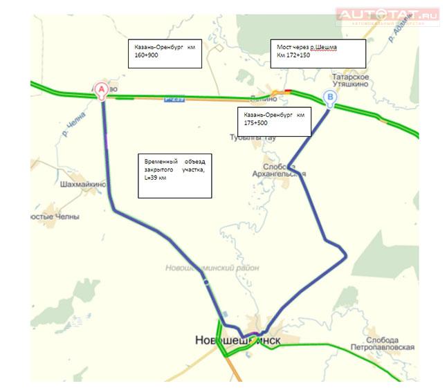 Отметим также, что водителям, движущимся со стороны Оренбурга необходимо планировать маршрут движения по автодороге Альметьевск-Набережные Челны с выходом на трассу М-7 “Волга”.