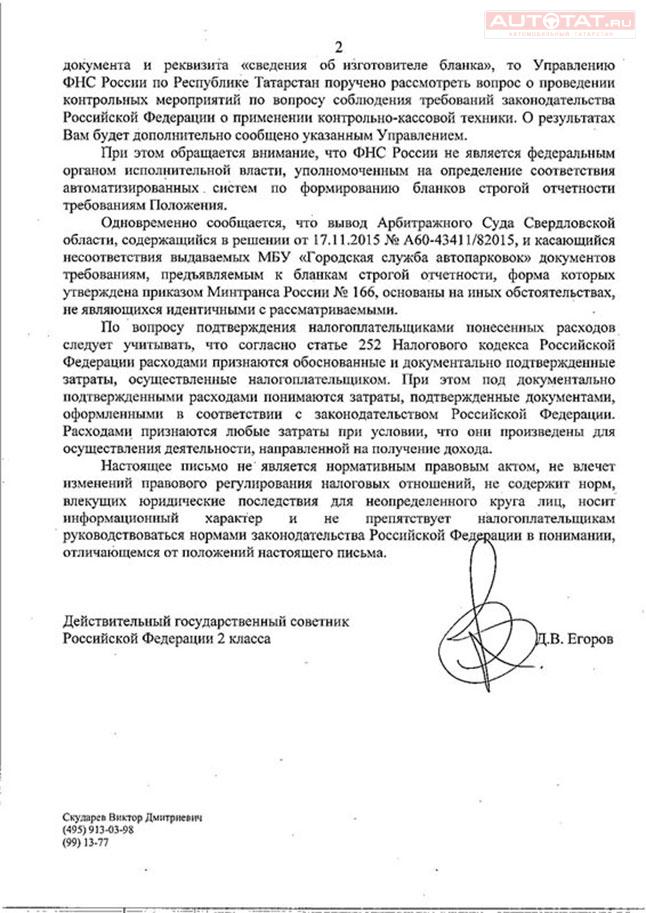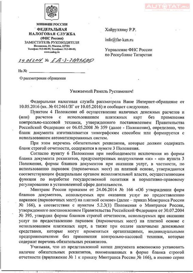 “Учитывая,что представленной копии документа невозможно установить наличие обязательных реквизитов, поименованных в форме бланка строгой отчетности, а именно серии документа и реквизита «сведения об изготовителе бланка, то УФНС по РТ поручено рассмотреть вопрос о проведении контрольных мероприятий по вопросу соблюдения требований законодательства РФ о применении ККТ”, - говорится в сообщении.