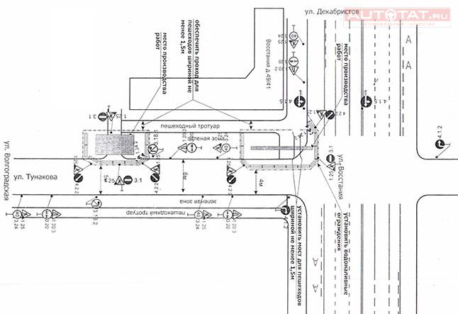 Закрытие движение связано с работами по прокладке водопровода в районе домов 41/49 по ул. Восстания и в районе дома 49/41 по ул. Тунакова.