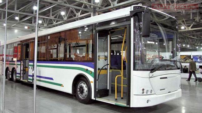 Автобус низкопольный, белого цвета вместимостью 105 человек.