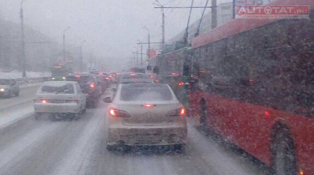 Сегодня в Казани наблюдаются пробки в 7 баллов. Это связано с резким ухудшением погодных условий.