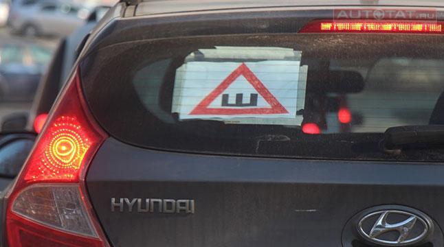Напомним, что за отсутствие знака "шипы" водителей на зимней резине начали штрафовать на 500 рублей.