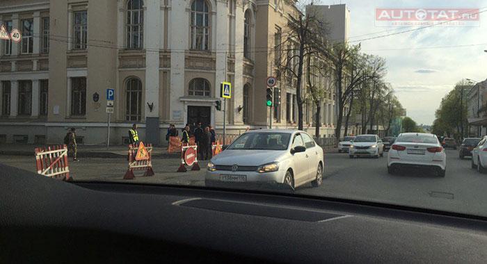 на автомобильной дороге на площади Тысячелетия в направлении к Кремлевской дамбе (от ул.Ташаяк до Кремлевской дамбы);