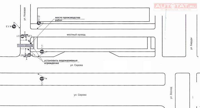Закрываются для движения улицы Серова и Низовая в Казани. СХЕМА