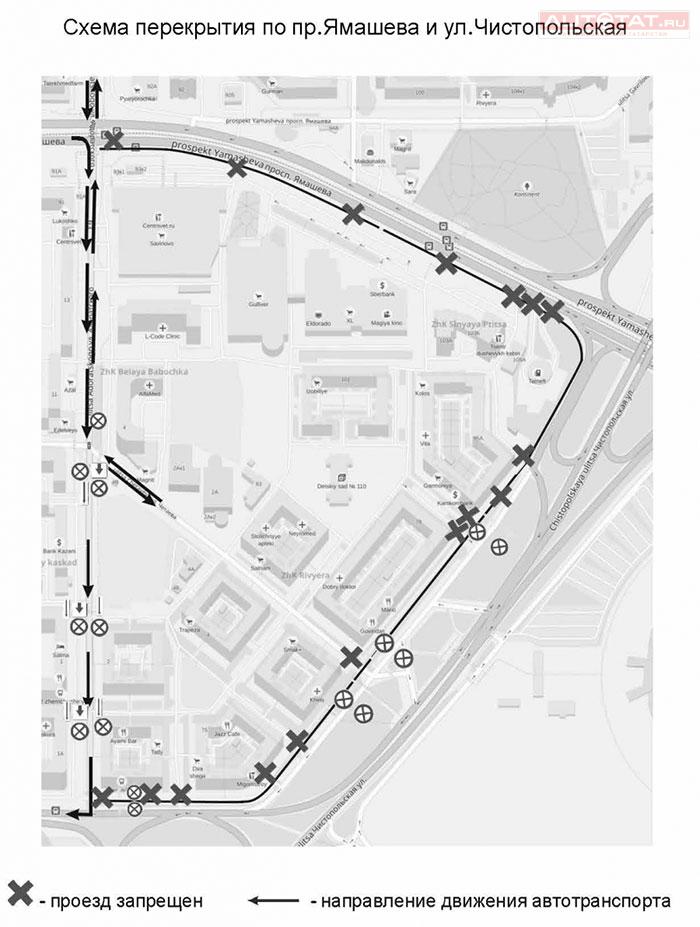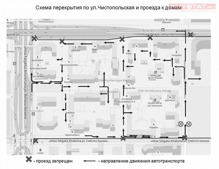 - ул. Чистопольская (от ул. Бичурина до пр. Ямашева при движении от ул.А.Бичурина за исключением съезда на пр. Амирхана в направлении ул.С Хакима);