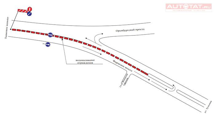 С 14 октября в Казани ограничили движение транспортных средств налево с Фермского шоссе в направлении Оренбургского проезда при движении от Танкового кольца.