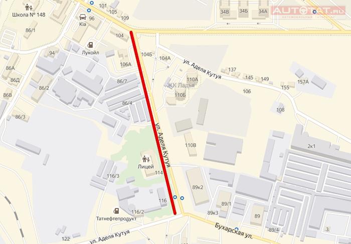 Дорожное полотно протяженностью 500 метров и шириной 7 метров будет полностью обновлено на участке от дома №104 по ул. А. Кутуя до ул. Бухарская.